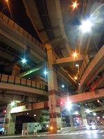 墨田川東岸の地域を、江戸時代以来整備されてきた運河と、関東大震災と東京大空襲という二つの災害からの復興をキーワードに、夜通しで歩き通しました。下町情緒あふれる街並みの中に、東京スカイツリーや箱崎ジャンクションなどの巨大な構造物が点在するほか、近年では巨大団地だけでなく、高層マンション・オフィスビルの建設が進んでいます。最後は物流の拠点となっている新砂を通り、夢の島公園で朝日を拝みました。(66期地図長)